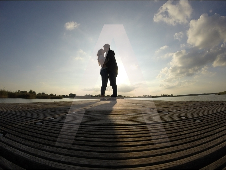 Embraced Couple kissing (seaside background) Stock Photo that can be used in web content, videos, images, and anything else.